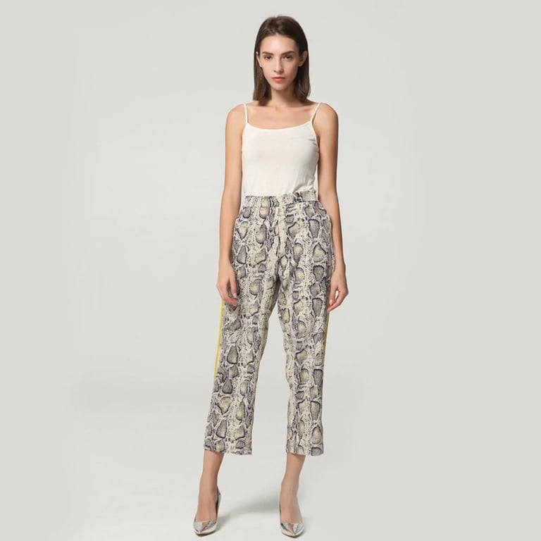 A cintura elástica realça perfeitamente as suas curvas. O visual 3/4 sublinha a impressão elegante e, se quiser usar a peça nos dias de outono, recomendamos adicionar botas altas de salto ao look.