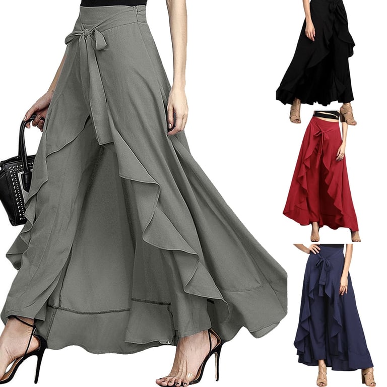 Calças de saia femininas largas
