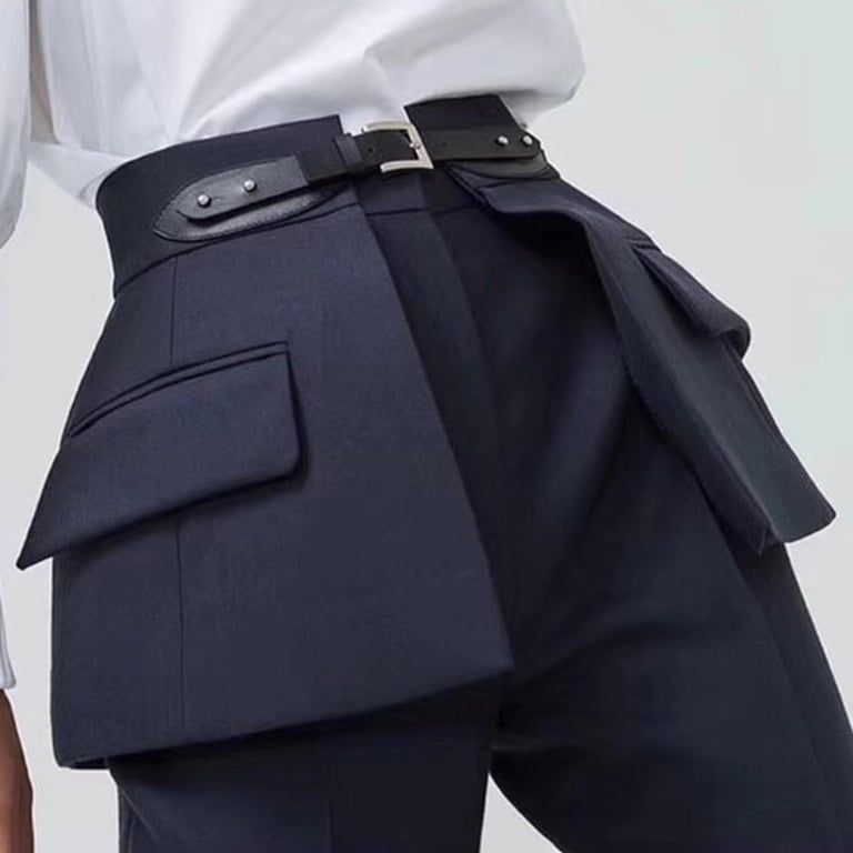 Calças longas femininas com cinto