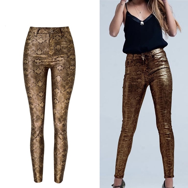 Calças skinny femininas com padrão de cobra