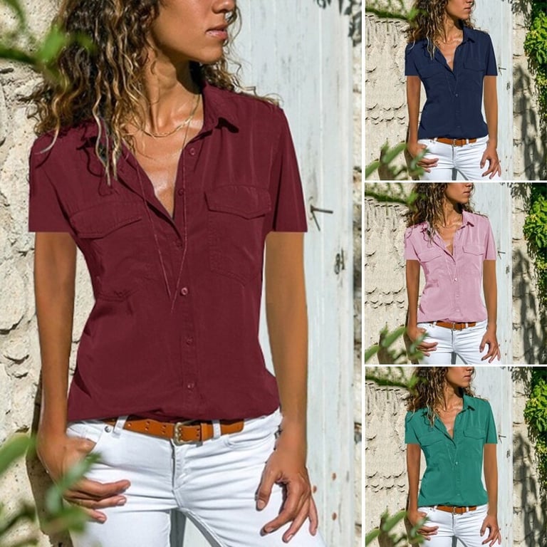 A camisa de senhora de manga curta fecha com botões, tem dois bolsos no peito e decote em V. Ideal para a cidade e para a natureza.