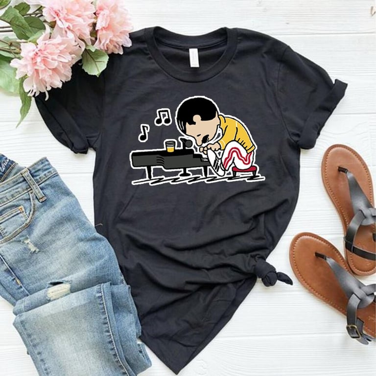 Camiseta feminina com estampa de piano