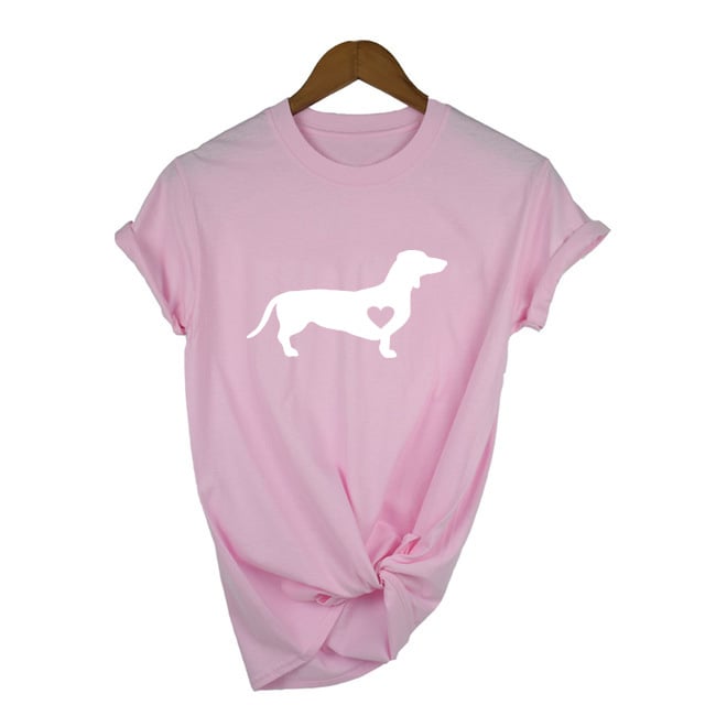 Camiseta feminina com estampado de teckel.