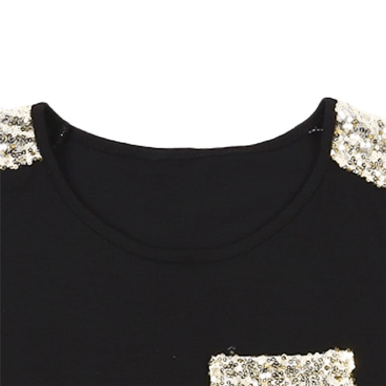 T-shirt feminina com lantejoulas pretas