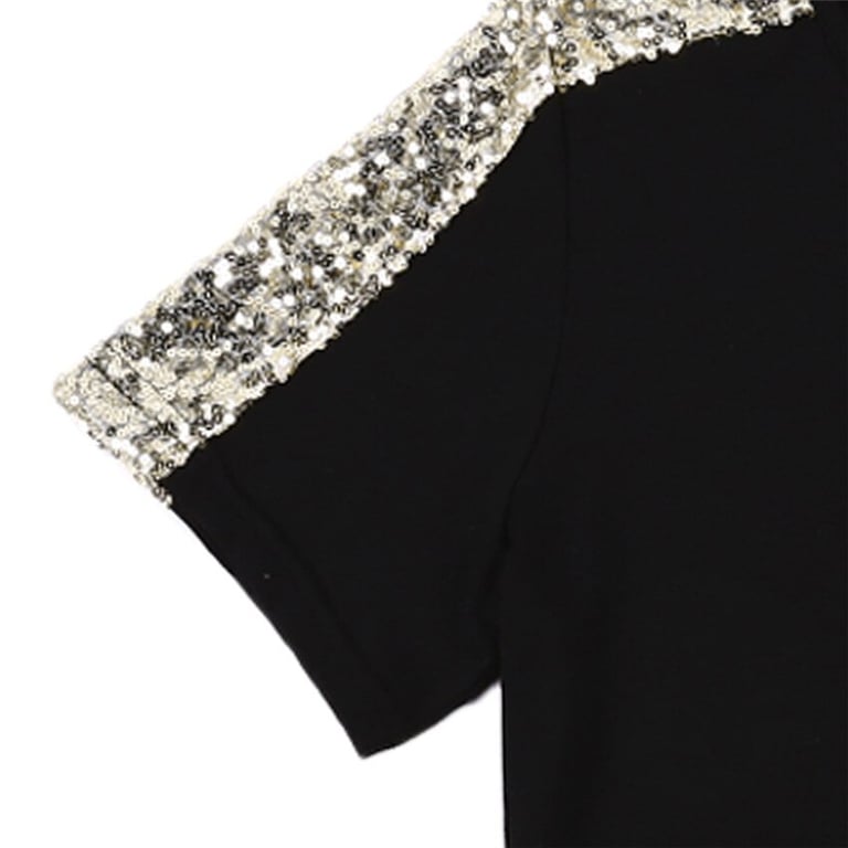 Camiseta feminina com lantejoulas pretas A963