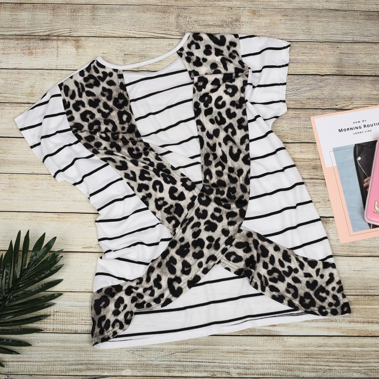 T-shirt feminina de leopardo com costas recortadas