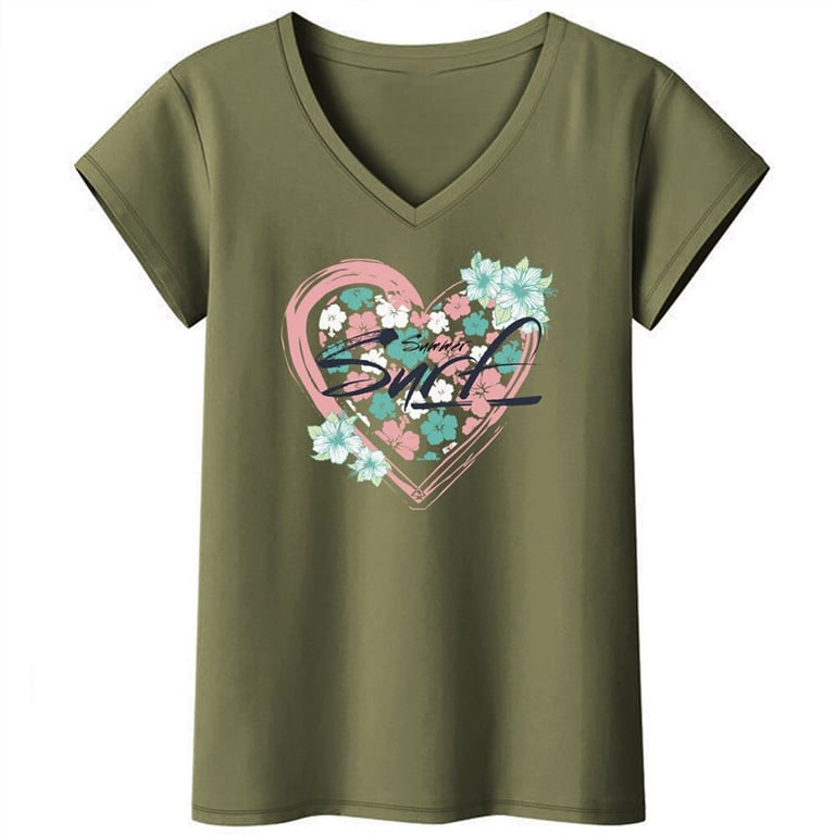 Camiseta confortável, ligeiramente elástica, com um estampado atrativo e decote em V. Compre de forma inteligente, a preços acessíveis.