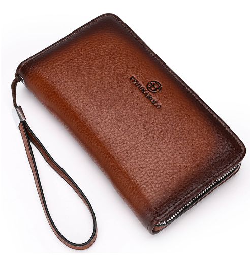 A carteira masculina em formato longo possui um grande espaço de armazenamento – encontrará nela várias divisórias para documentos e cartões de pagamento, compartimentos para notas de papel, recibos, etc.