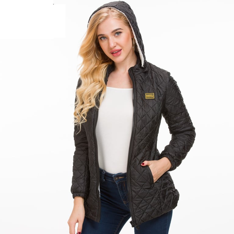 Casaco preto feminino com pelagem