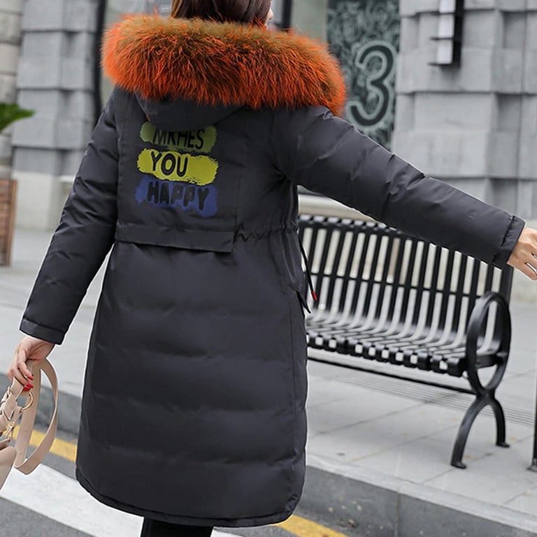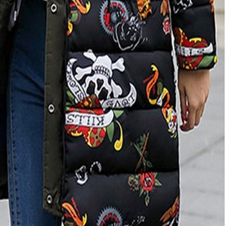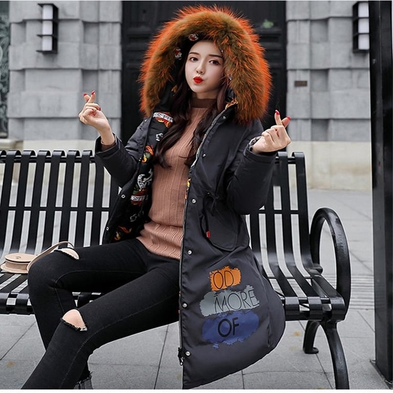 O casaco é reversível com inscrições nas costas e bolso.