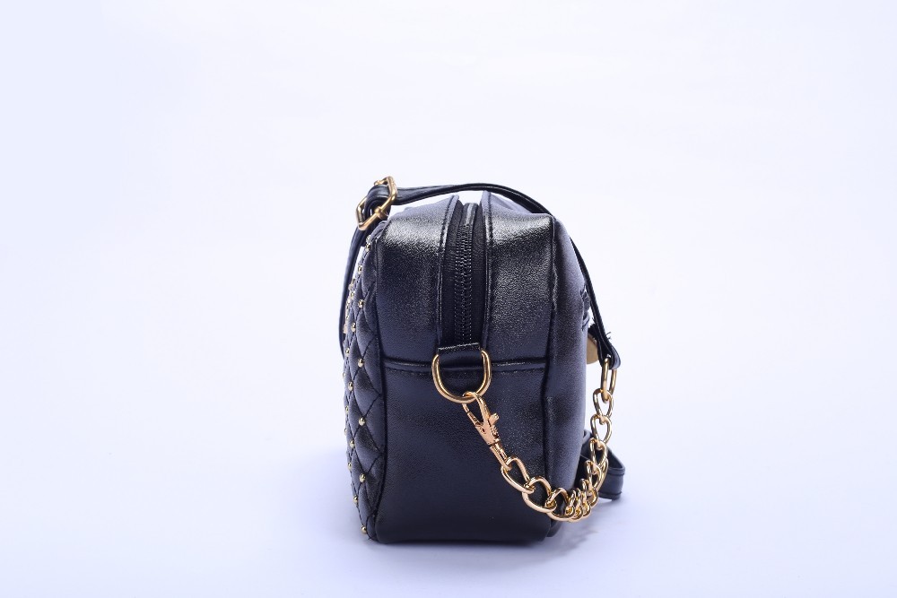 A carteira encaixa-se lindamente na mão e, após a fixação da corrente, pode ser usada também ao ombro.