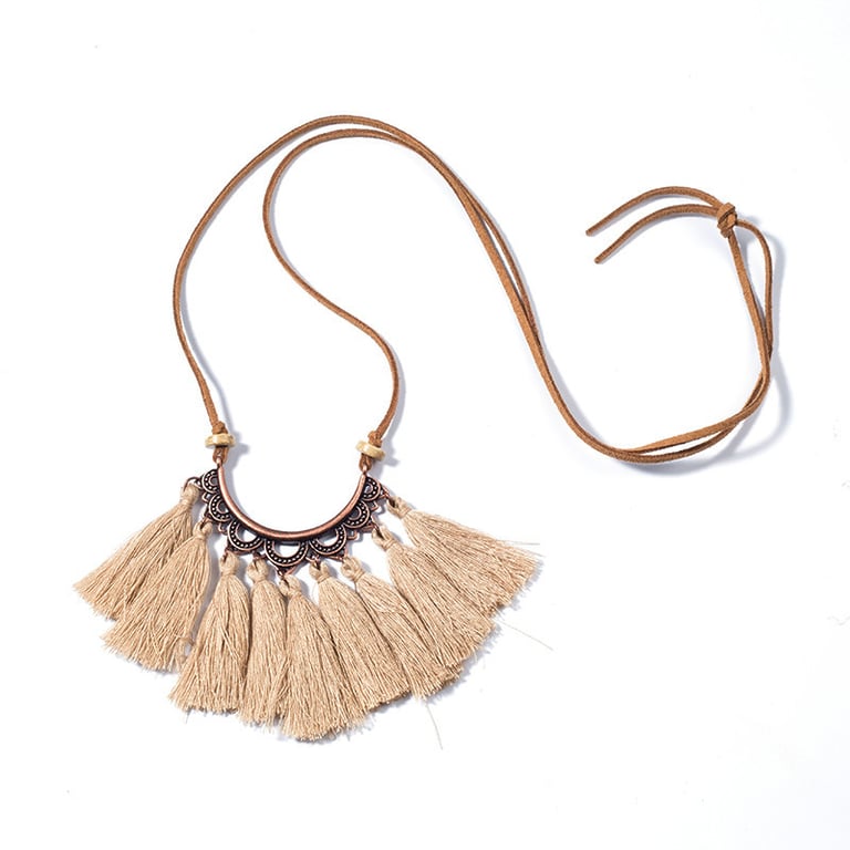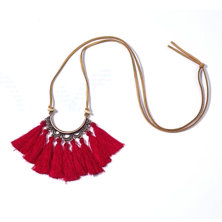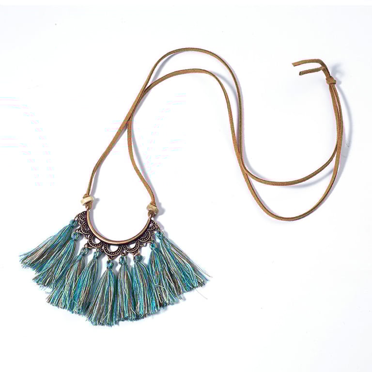 Colar com franjas coloridas em cordão de couro. Acessório ideal para o verão.