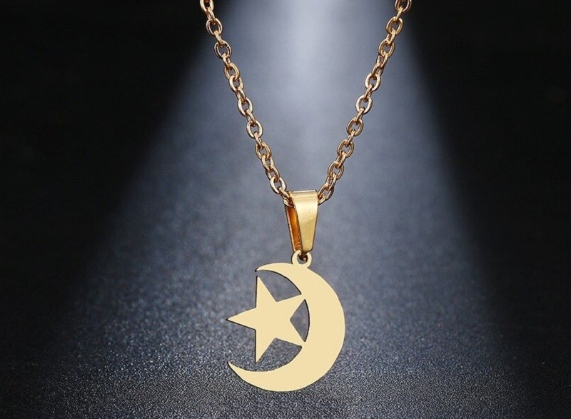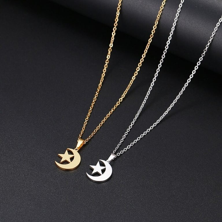 Colar feminino com estrela e lua