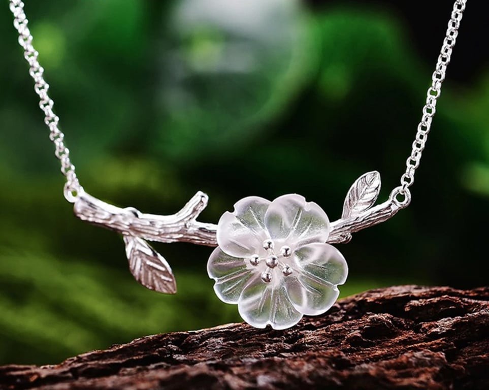 Colar feminino com flor na rama