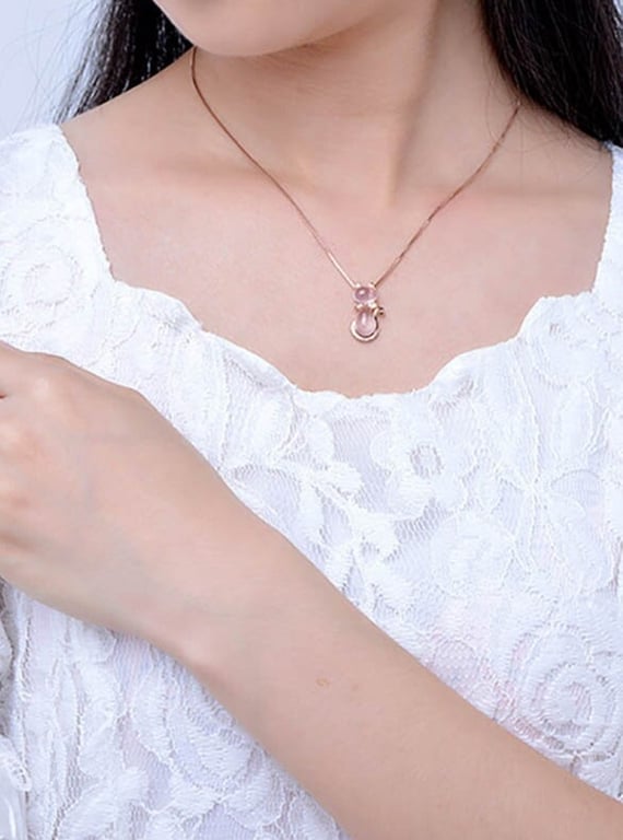 Material: metal de bijuteria, imitação de quartzo rosa