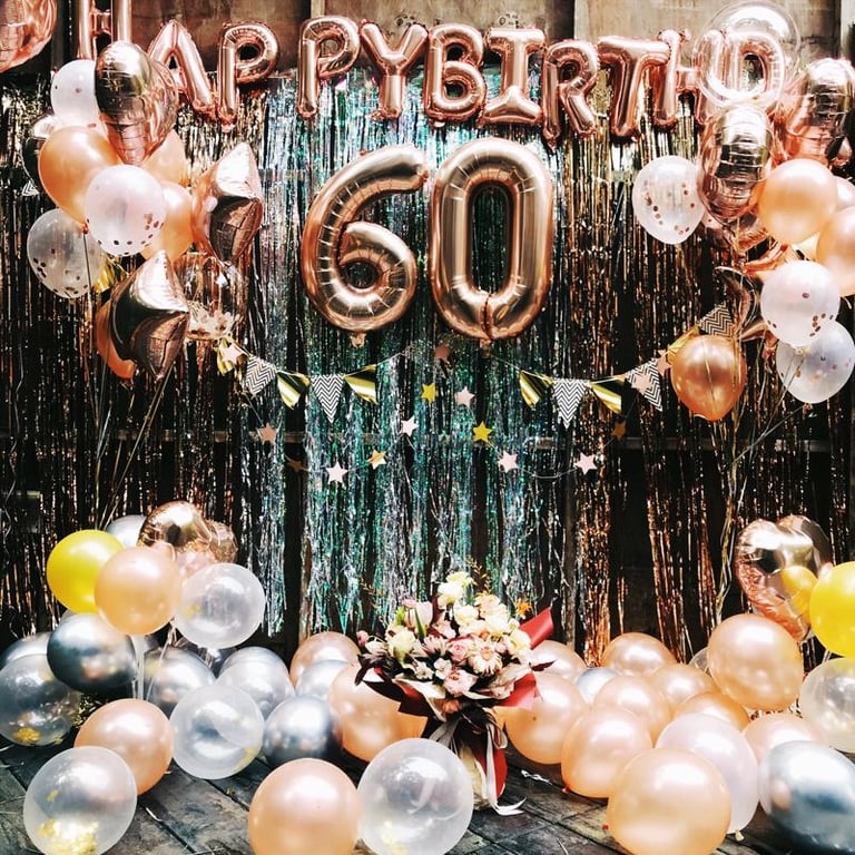Etiquetas: conjunto de decoração, aniversário, festa de aniversário, balões, inscrição, rosa dourado
