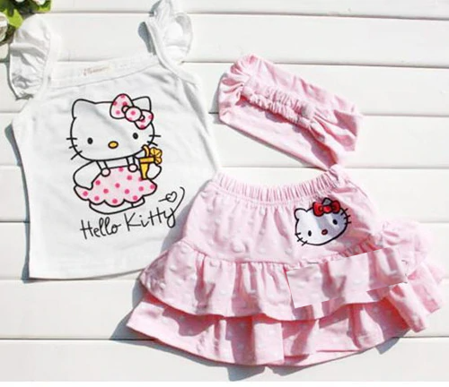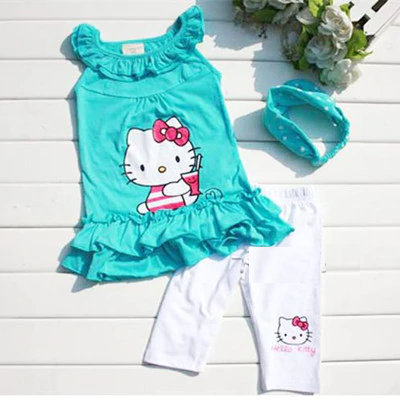Conjunto de roupa de verão para meninas com estampado da Hello Kitty