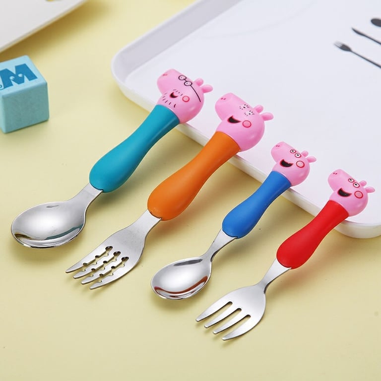 Maravilhosos talheres com personagens da popular série infantil Porquinho Peppa.