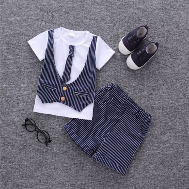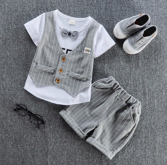 Conjunto de verão casual para menino | T-shirt com colete, Calções. Conjunto de verão casual para menino | T-shirt com colete, Calções