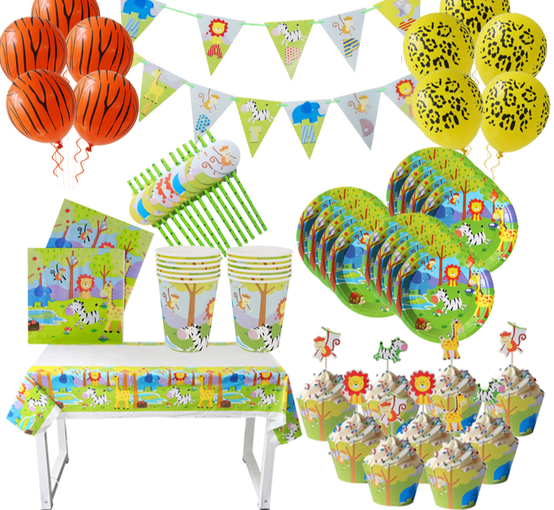 Etiquetas: guardanapos, toalha de mesa, pratos, copos, decorações, decorações de festa, safari, aniversários, festa, conjunto