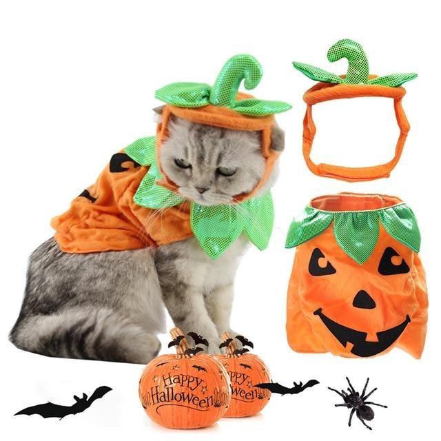 Fantasia de Halloween para gatos em forma de abóbora.