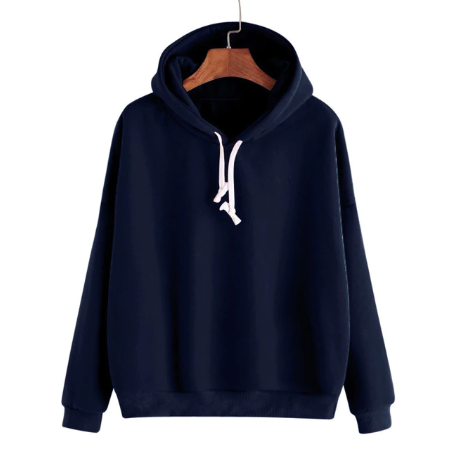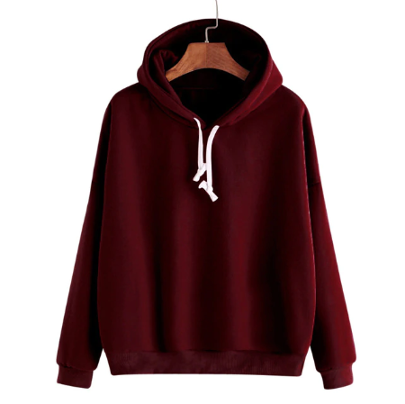 Sweatshirt feminina de uma só cor com capuz e cordões. Tem um corte clássico e é adequada para desporto, para a natureza ou para momentos de lazer.