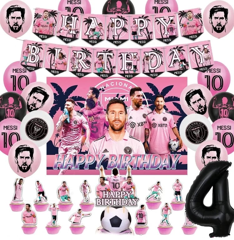 Grande conjunto de festa de aniversário com balões do Lionel Messi.