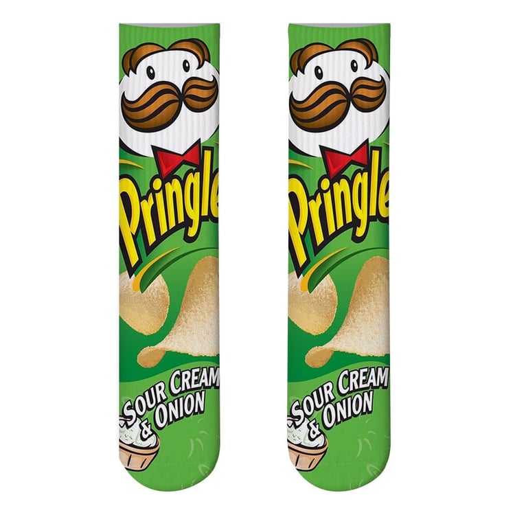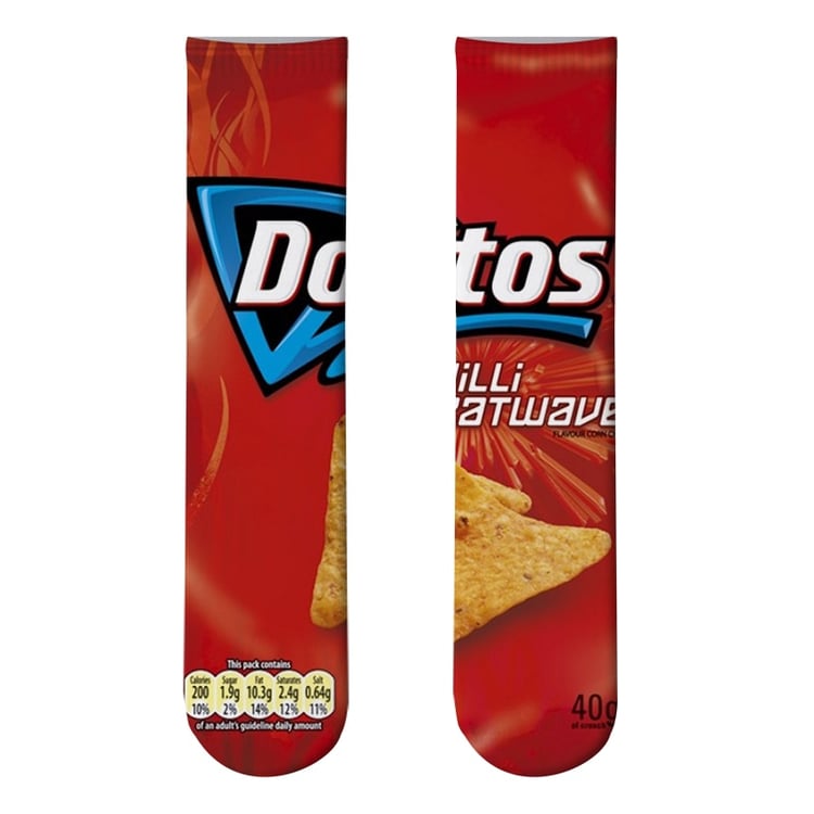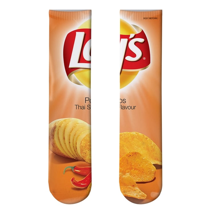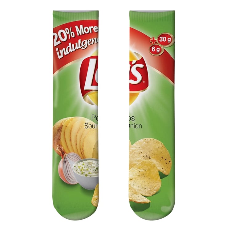 Meias 3D altas com vários motivos de conhecidos chips de batata.