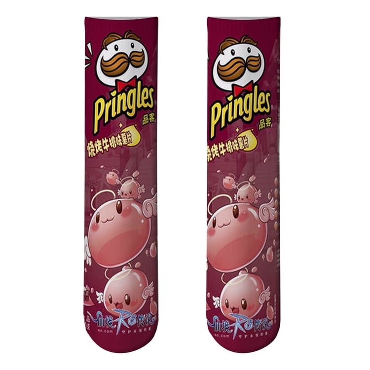 Meias 3D altas com vários motivos de conhecidos chips de batata