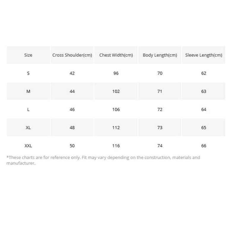 • Tamanhos: S-XXL