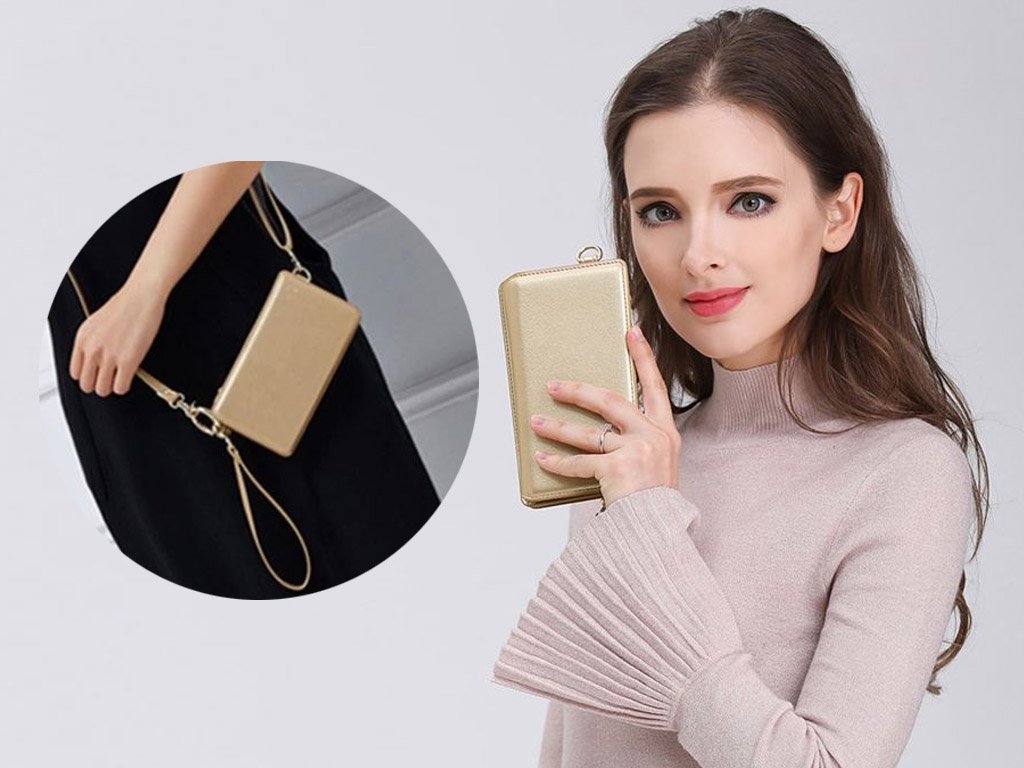 Mini carteira para telemóveis iPhone é uma carteira, bolsa e bonito estojo em um só.