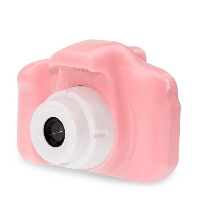 Câmara fotográfica mini com imagens. Cores bonitas rosa e turquesa.