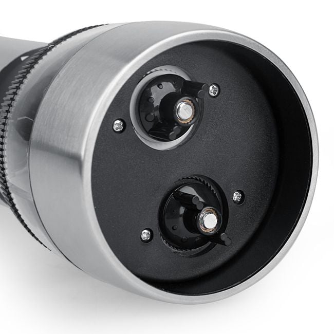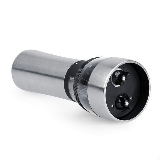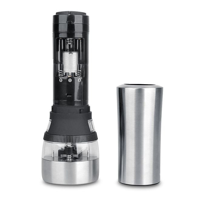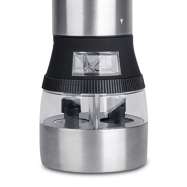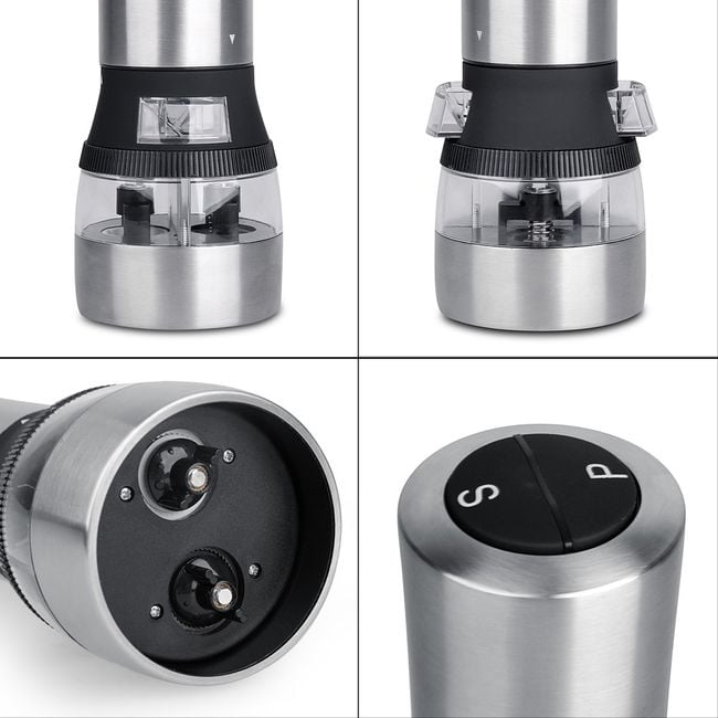 O moedor elétrico pode moer sal e pimenta graças aos dois compartimentos separados.