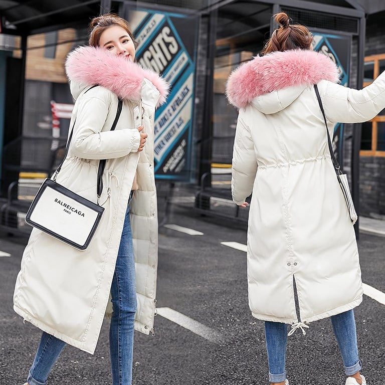 Parka de inverno feminina com pelagem rosa – vendemos em várias opções de cores.