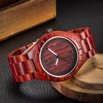 Estes relógios para homem são feitos de madeira natural de alta qualidade, equipados com um mecanismo Quartz de qualidade e fecho de fivela metálica.