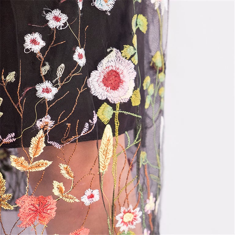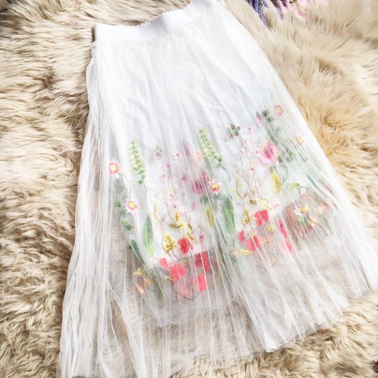 Saia estilosa com bordados de flores.
