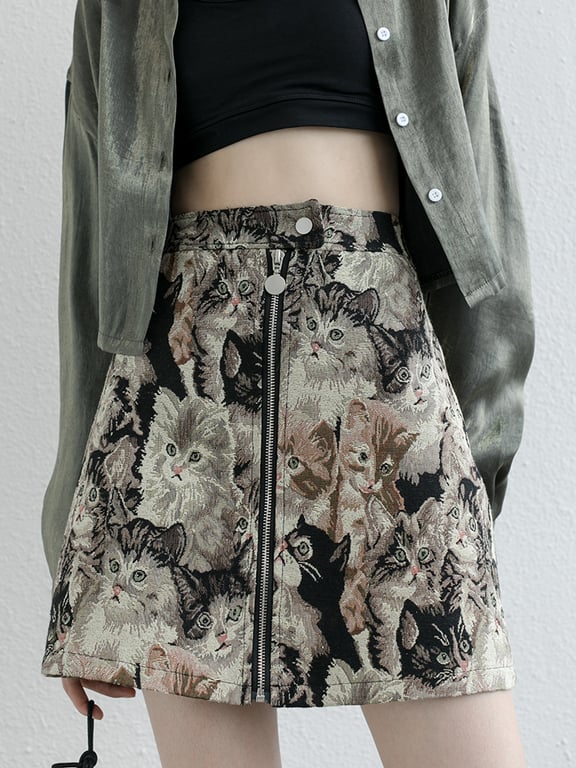 Saia mini feminina com estampado de gatos
