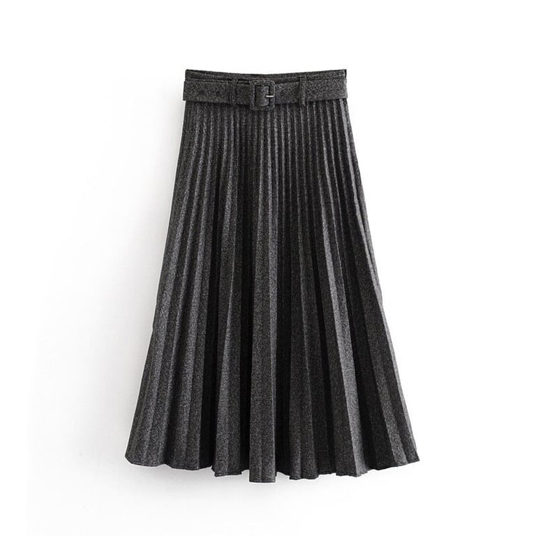 Saia plissada feminina com cinto