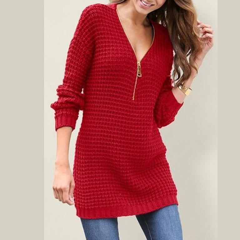 Suéter feminino mais longo com um sensual decote aberto. Completa o seu visual diário.
