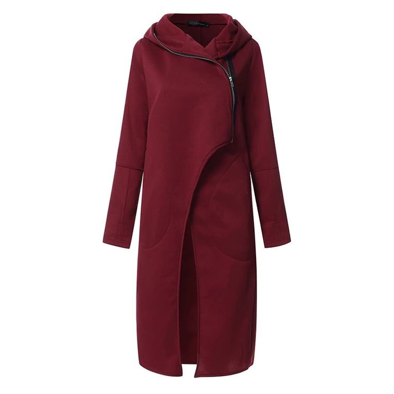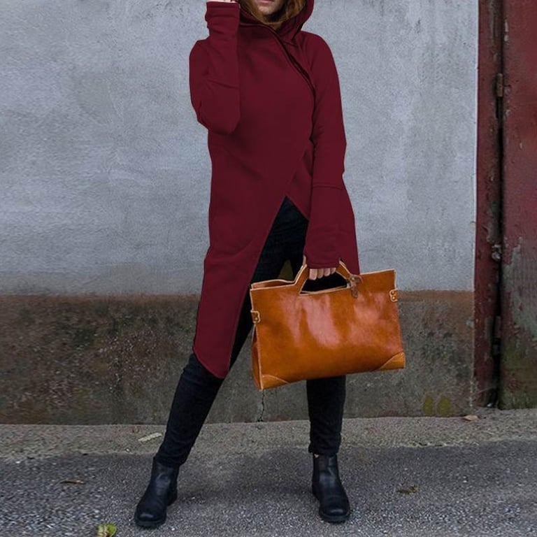 Manta longa estilosa com corte assimétrico e bolsos profundos.