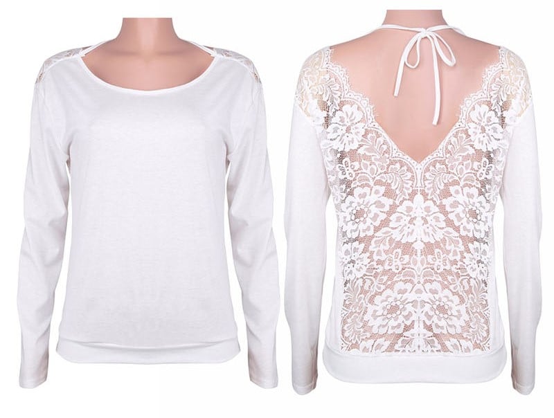 Seja bonita e elegante com este sweatshirt, que tem costas rendadas com um corte em V e um laço. Está disponível em duas cores.