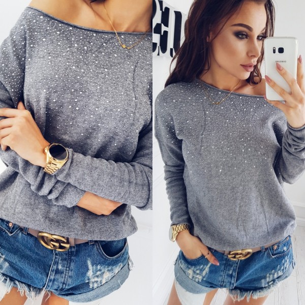 Sweatshirt elegante adornada com pedras. Tem mangas longas e decote barco. Ideal para a primavera.
