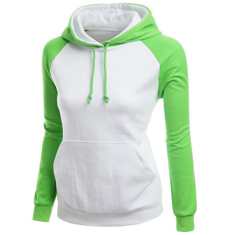 Sweatshirt feminina que é de duas cores, tem capuz e um grande bolso canguru. É adequada para o tempo livre ou para desporto.