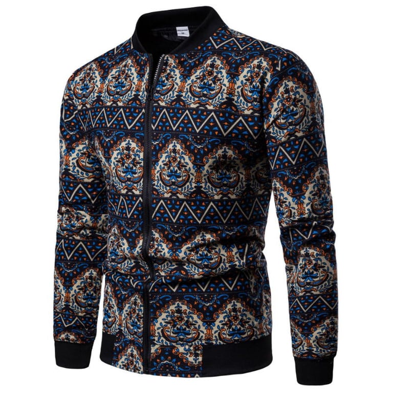 Sweatshirt masculina sem capuz com colarinho. A sweatshirt tem fecho de correr e elástico na cintura. Material leve e agradável. Padrão colorido. Disponível em várias opções.