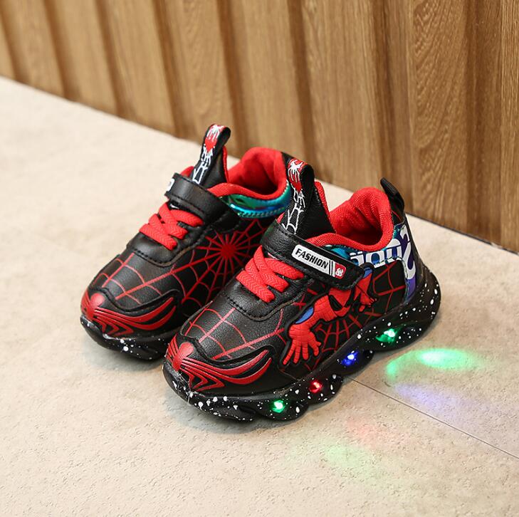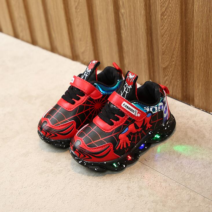 Ténis desportivos infantis com sola que brilha - Spiderman