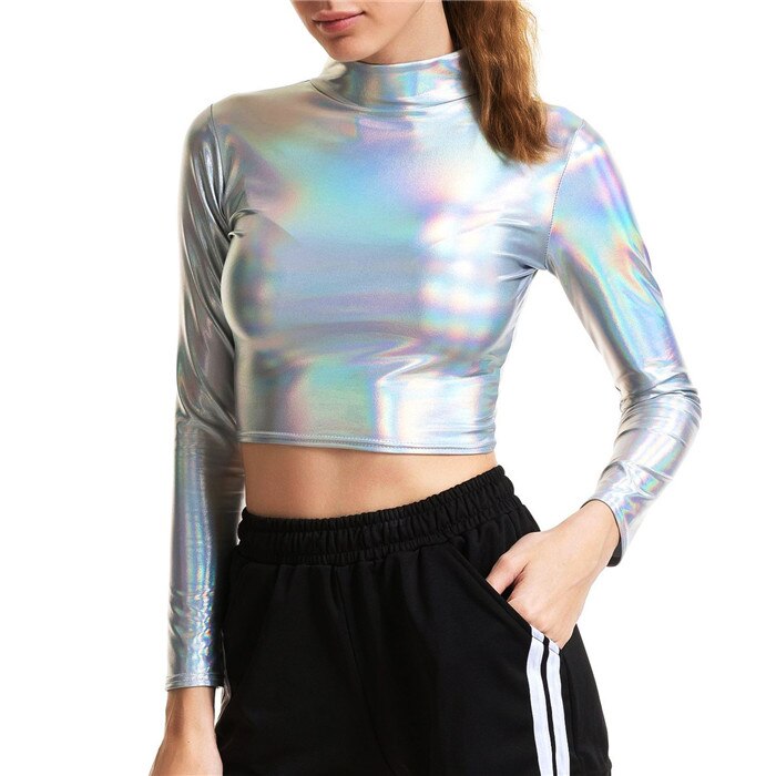Top cropped metálico feminino
