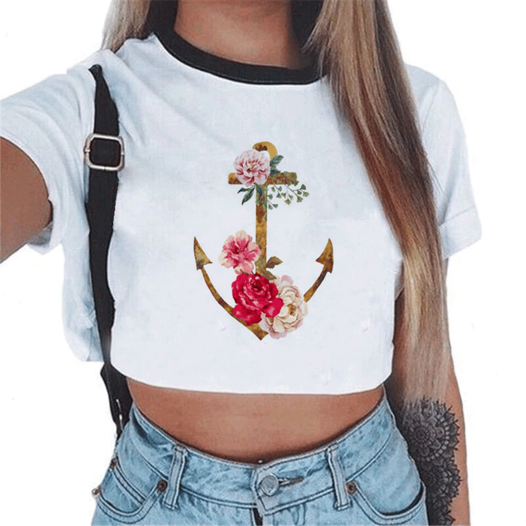 Top cropped branco feminino com estampado