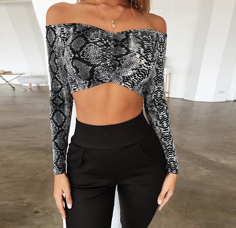 Top cropped feminino com ombros à mostra