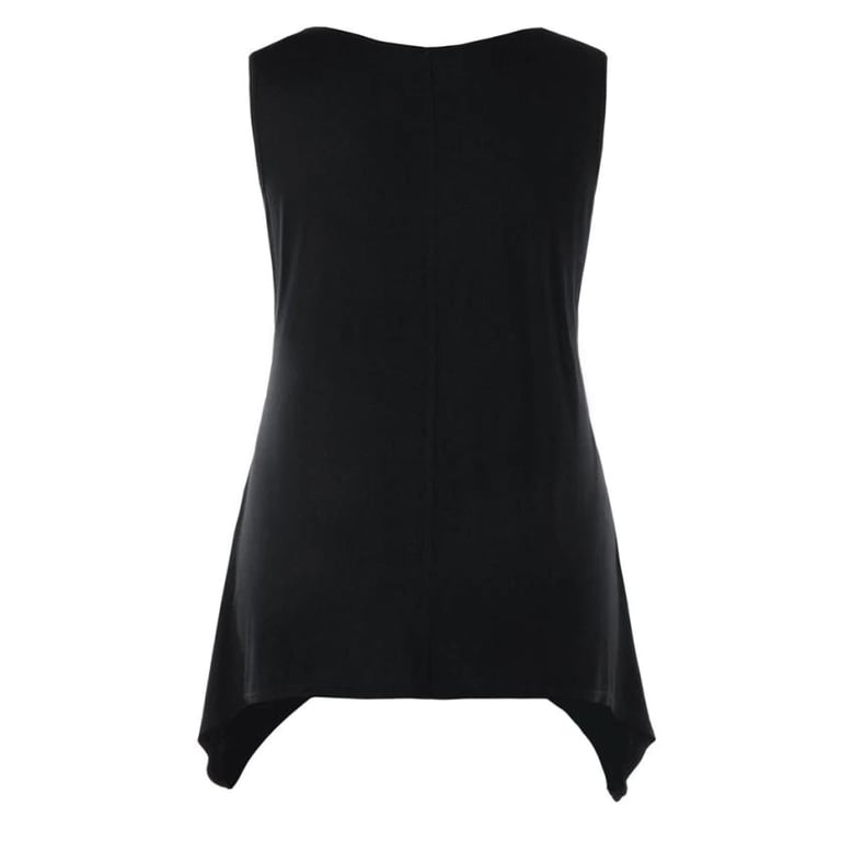 Top de rockeira feminino solto com rosa. É sem mangas e com decote em V.