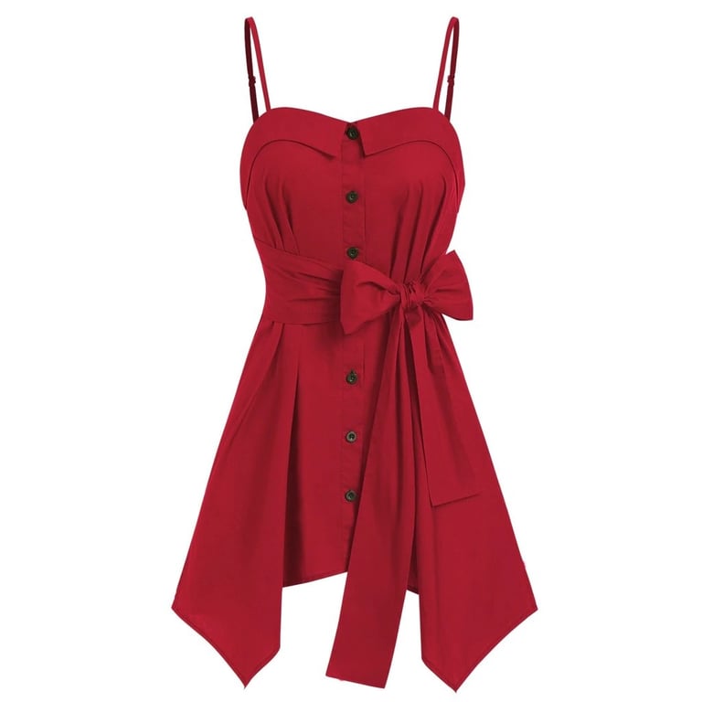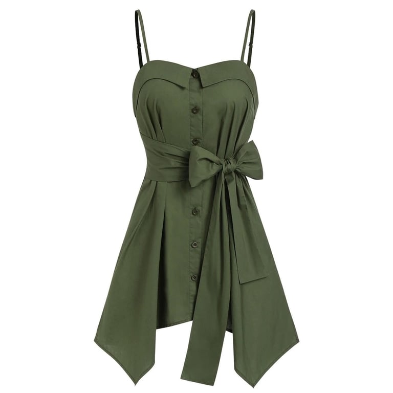 Top feminino longo de alças. Fecha com botões e tem um laço na cintura. Ótimo para os quentes dias de verão.